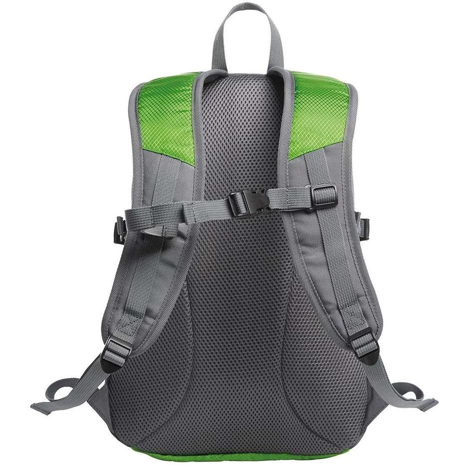 - Rucksack mit großem internen Hauptfach mit Reißverschluss, seitlichen Befestigungsgurten, vorderer Reißverschlusstasche mit zwei einsteckbaren Fächern, reflektierenden Streifen vorne und seitlichen Netzfächern.