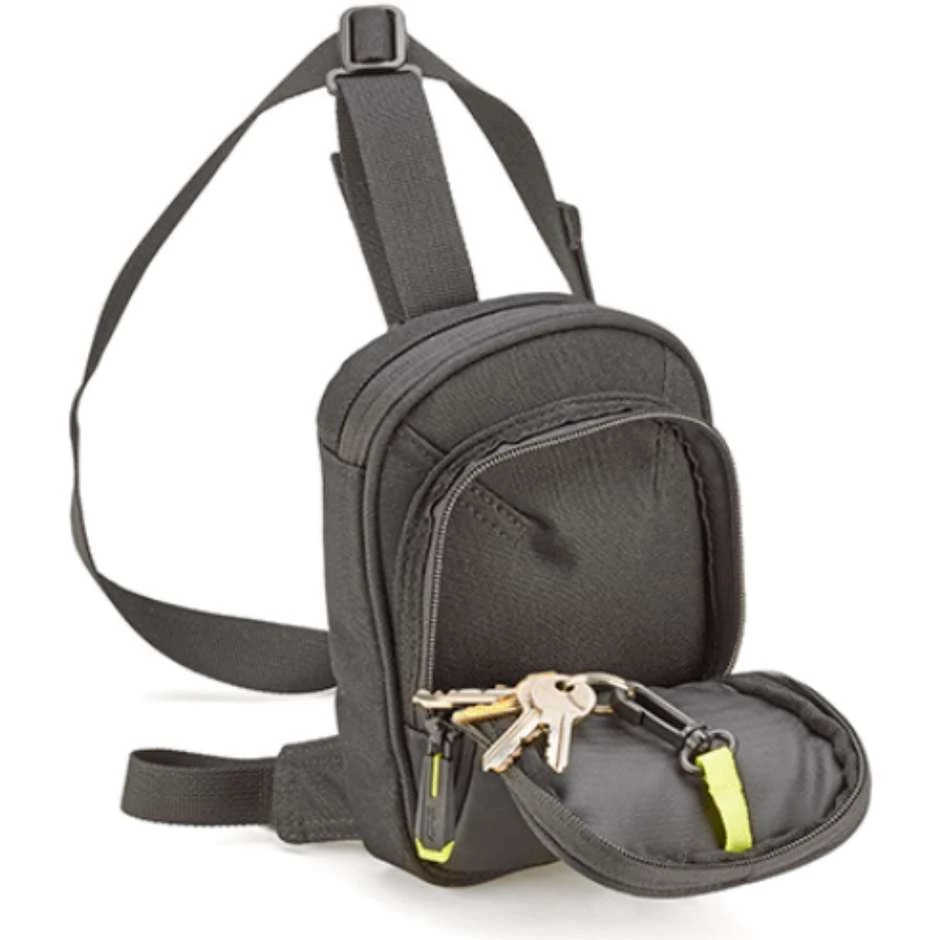 Dank des abnehmbaren Hüftgurts kann die Tasche auch direkt am Gürtel oder an der Hosenschlaufe befestigt werden.