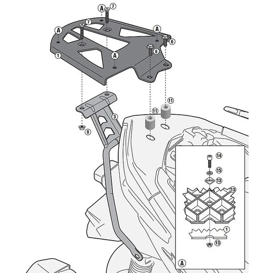 Spezifischer Gepäckträger für MONOLOCK®-Topcase, der mit der bereits im MONOLOCK®-Topcase enthaltenen Platte kombiniert werden kann