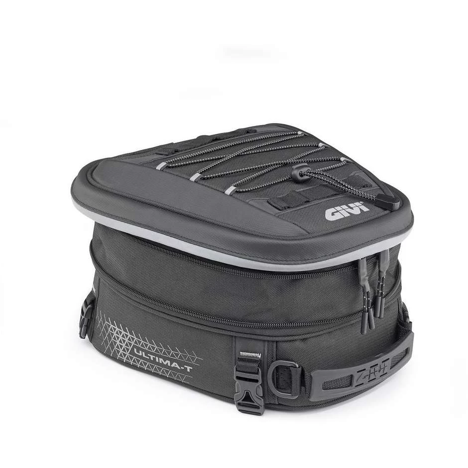 Satteltasche und ausziehbarer Gepäckträger mit wasserdichter Innentasche, Fassungsvermögen 8 Liter.