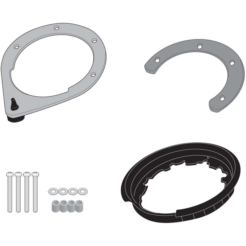 - Metallflansch zur Befestigung am Tank mit dem Nylonring, der in allen Tancklock-Taschen enthalten ist.