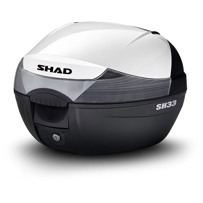 SH33 ist ein kompaktes und praktisches Topcase für Motorräder aus hochwertigem, verstärktem Polypropylen mit der Kapazität eines zu öffnenden Helms und verschiedenem Zubehör. Es zeichnet sich durch klassisch geschwungene Formen und einen zentralen Reflektor aus. Ideal für Motorroller und Motorräder mit kleinem Hubraum.
