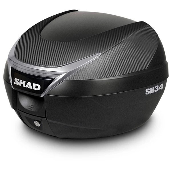 Koffer für Motorräder und Motorroller Shad Sh34 Carbon Look 34 Liter.SH34 ist ein kompakter und praktischer Motorradkoffer aus hochwertigem, verstärktem Polypropylen mit Platz für einen modularen Helm und andere kleine Gegenstände. Diese Version enthält die Abdeckung mit Carbon-Effekt, die der Top-Box eine attraktive, sportliche, aber gleichzeitig elegante und urban-artige Ästhetik verleiht.