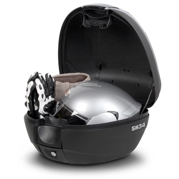 - Durch das optimierte Innenvolumen können Sie das tatsächliche Fassungsvermögen des Topcase von 34 Litern voll ausnutzen. Der hintere Teil des oberen Gehäuses hat eine konkave Form, die das Gehäuse der Rückenlehne (optional) und den Komfort der Passagiere begünstigt.