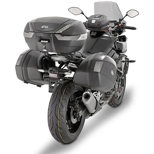 Die gleichmäßige Verteilung der Last auf der gesamten Ebene der Tragplatte wird ebenfalls durch drei Befestigungspunkten gewährleistet ist, so angeordnet, dass eine hohe Kontaktfläche des Fahrrades oder Rollers zu erhalten.Die Dämpfung der Schwingungen und Vibrationen und integral mit dem Kontakt zwischen dem Boden des Koffers und der Platte sind stattdessen vier Abstandshalter, die mit elastischem Material besonders widerstandsfähig gegen Verwitterung und Temperaturschwankungen betraut. Diese Lösungen haben GIVI erlaubt ein hohes Maß an Zuverlässigkeit der Verriegelung, in der Zeit konstant zu erzielen und in der Lage, die Spannungen mehr im Zusammenhang mit der Straßenoberfläche und der Fahrumgebung markiert zu widerstehen.