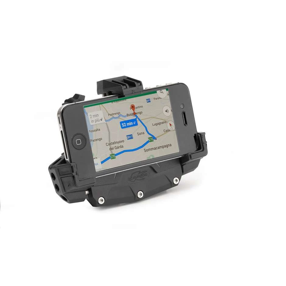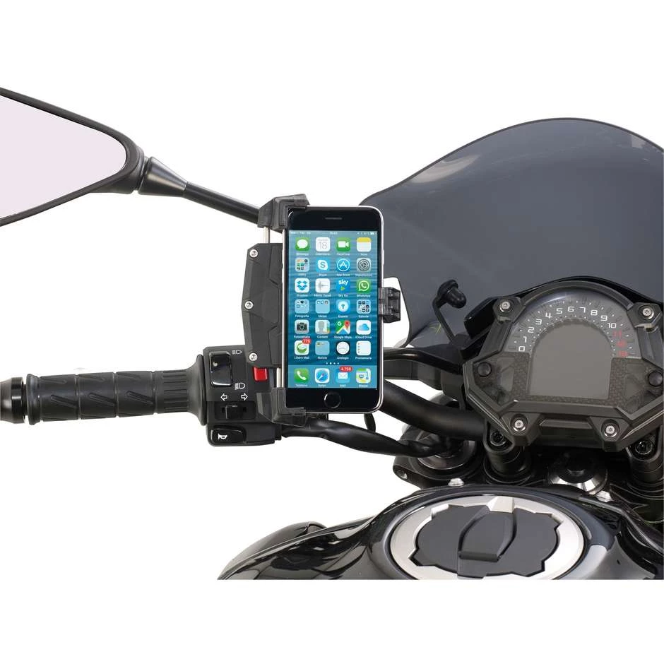Universal-Smartphone Tür Zange zur Befestigung an Motorrädern, Rollern, Fahrrädern und Quads.Für Smartphone mit Außenabmessungen: 112 x 52mm Minimum und Maximum von 148 x 75mm