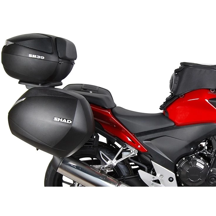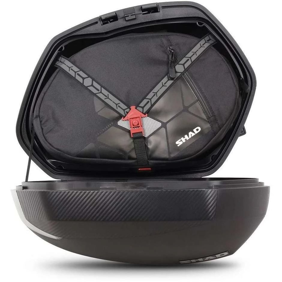 - Die SH36-Seitentaschen mit kohlenstoffähnlicher Beschichtung sind die perfekte Kombination für die eXpandible Top-Case-Typen SH58X, SH48 oder SH39, die standardmäßig eine Version mit kohlenstoffähnlicher Beschichtung haben