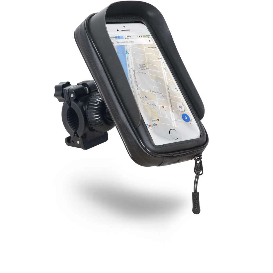 Universeller wasserdichter Smartphone-Halter für Motorräder. Je nach gewählter Version verfügt es über eine einstellbare Befestigung am Lenker oder Rückspiegel, die sehr einfach und schnell zu installieren ist.
