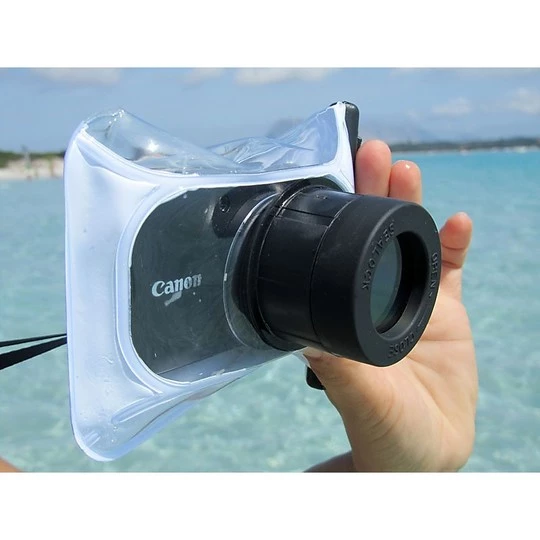 Üben Sie universelle Kameragehäuse geeignet Kameras von verschiedenen Modellen enthalten und Größen mit Teleskop Zoom 35mm. Aus stabilem transparentem PVC auf beiden Seiten ermöglicht es Ihnen, Video-Fotografen und oder im Wasser zu machen.