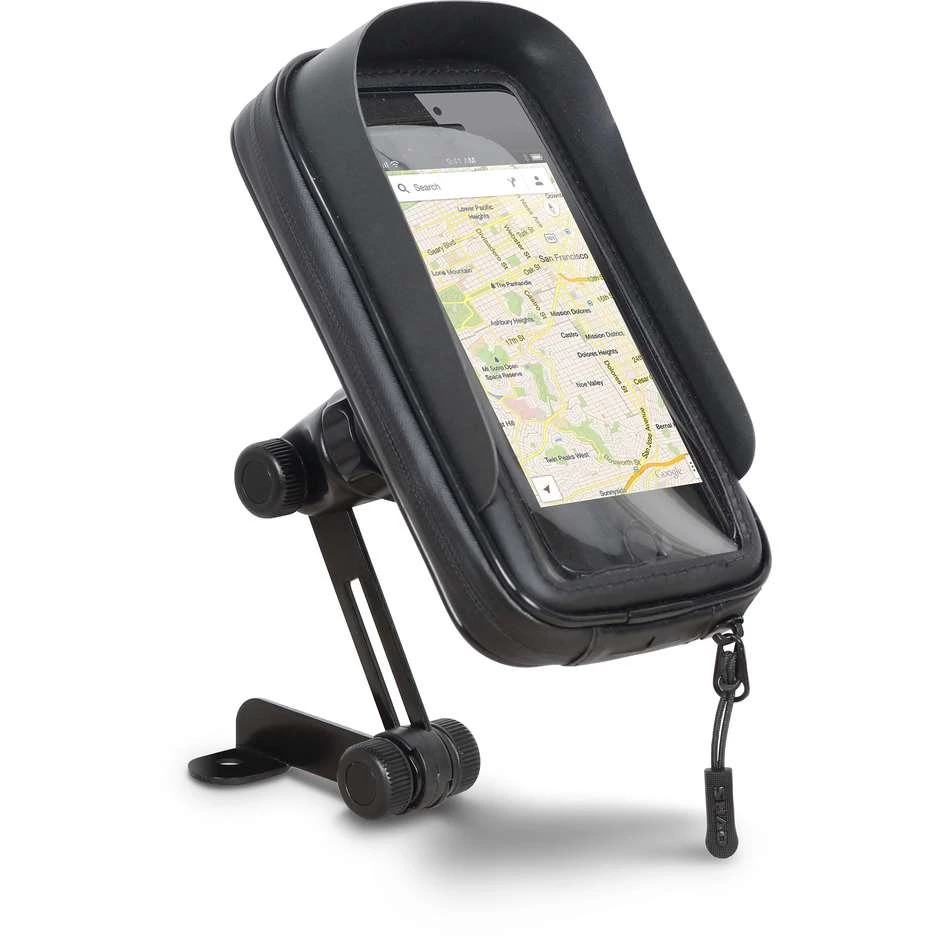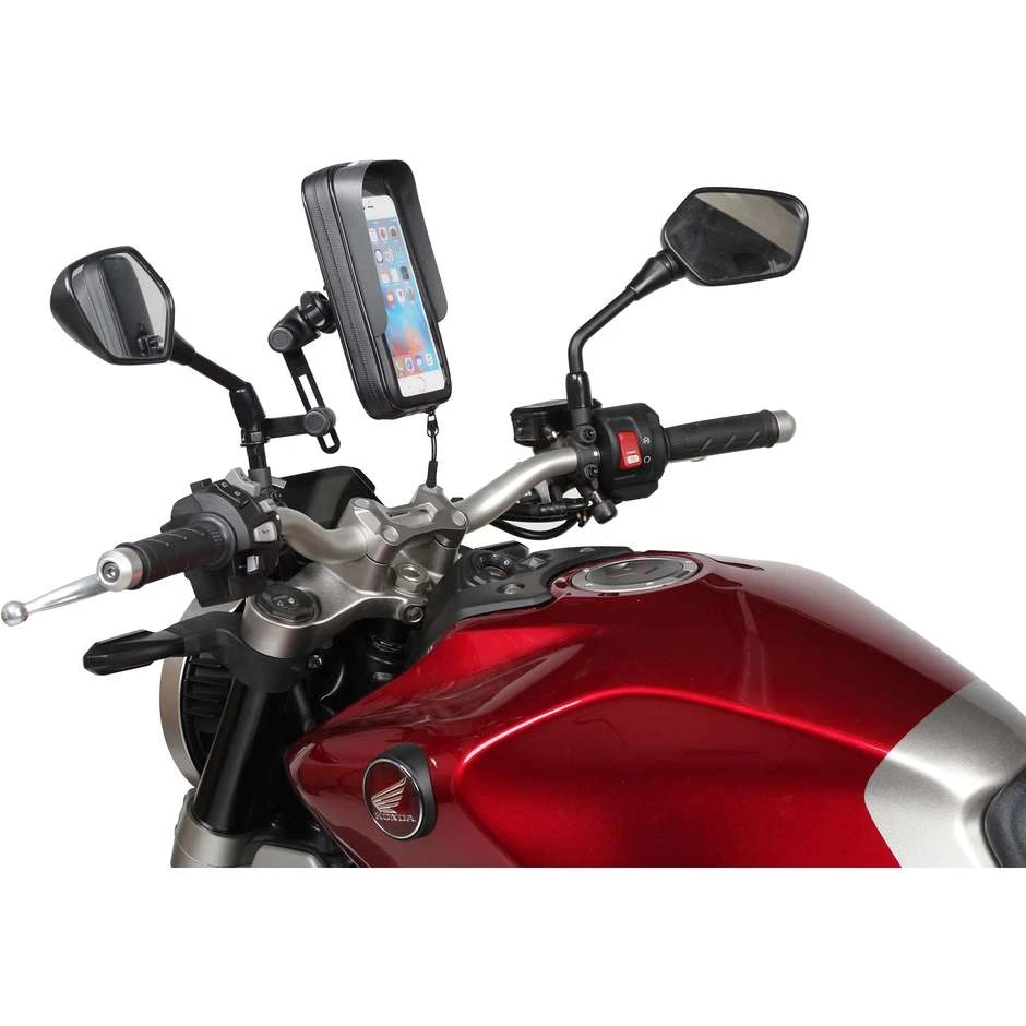 Universeller wasserdichter Smartphone-Halter für Motorräder. Je nach gewählter Version verfügt es über eine einstellbare Befestigung am Lenker oder Rückspiegel, die sehr einfach und schnell zu installieren ist.