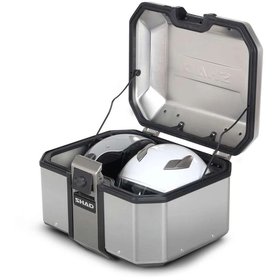 Top Case Motorrad Top Case aus Aluminium Shad Terra TR48.Das TR48 Top Case wurde zu 100% in Barcelona entwickelt und hergestellt und hat die Kapazität eines Trailhelms oder zweier Helme (Integral + Jet). Es verfügt über ein aerodynamisches, integriertes strukturelles Design und besteht aus einer eloxierten Aluminiumlegierung, einer Aluminiumart, die eine reduzierte Dicke von 1,2 mm für maximale Festigkeit bei minimalem Gewicht ermöglicht. Scharniere aus Edelstahl AISI 304, ausgestattet mit integriertem „TERRA Lock System“ (zum Patent angemeldet). Es handelt sich um einen AISI 304-Edelstahlrahmen in Industriequalität, der das Verriegelungssystem und den integrierten versenkbaren Griff umfasst. Entwickelt für den schnellen Einhandgebrauch, ermöglicht es dem Benutzer, den Koffer zu öffnen und zu schließen sowie ihn in Sekunden zu reparieren und zu entfernen.Maximaler Schutz für Ihr Gepäck dank der inneren Basis aus gepresstem Gummischaum, die die Verlagerung der Ladung im Inneren verringert. Möglichkeit, zusätzliche Last dank der externen Haken aus Edelstahl AISI 304 hinzuzufügen. Für die Installation des Topcase am Fahrrad sind ein spezielles TOP MASTER-Befestigungsset und eine Platte (nicht im Lieferumfang enthalten) erforderlich. Zwei Plattenoptionen verfügbar: SHAD-Standardplatte (D1B481PA – hergestellt ab 2020) oder Aluminiumplatte (D1BTRPA). Weitere Informationen finden Sie unter „So kaufen Sie Terra-Koffer“. Die Schlüsselverriegelungsbuchsen sind leicht zu wechseln: In weniger als 5 Minuten können Sie die Seitengehäuse oder das Obergehäuse austauschen, um einen einzigen Schlüssel zu verwenden. Eine zusätzliche Verriegelungsbuchse für das Topcase ist im rechten Gehäuse enthalten. Weitere Informationen unter „Support“. Optionales Zubehör (nicht im Lieferumfang enthalten): Rückenlehne aus zwei Teilen (D0RI75) und erweiterbarer Innentasche (X0IB47).