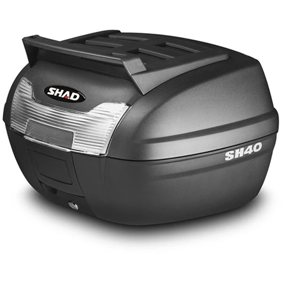 - SH40 ist ein Topcase aus hochwertigem, verstärktem Polypropylen mit einem Fassungsvermögen von 40 Litern, das ausreichend Platz für einen Integralhelm, mehr Zubehör oder zwei Jet-Helme garantiert