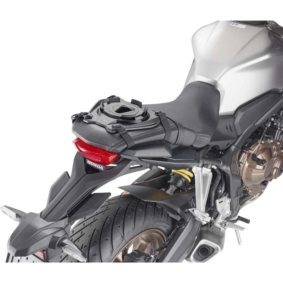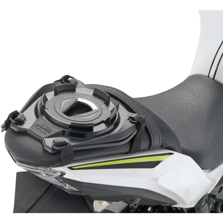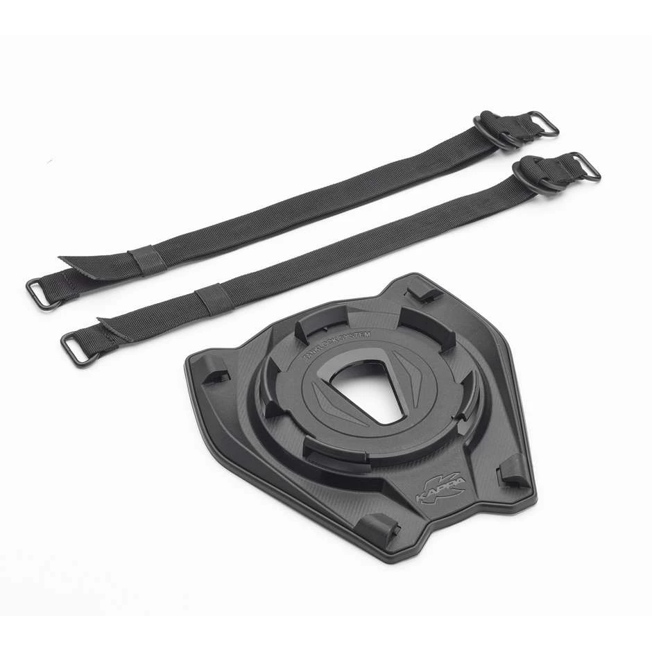 Universelle Befestigungsbasis zur Verwendung eines Tanklock- oder Tancklocked-Beutels am Sattel anstelle des Passagiers.