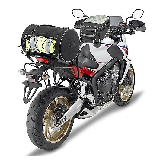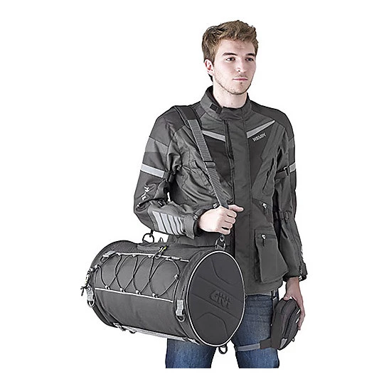 Ein Befestigungssystem mittels Riemen mit Doppel D-Ringe an der Vorder- und Rückseite des Beutels und einem zentralen Sicherheitsband an der Basis in den Sattel oder unter dem Schwanz eingefügt werden.
